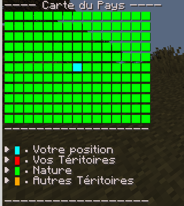 Trouvez une zone libre en étant à plus de 4 chunks des autres villes autour. Pour faciliter votre tâche, utilisez /rtp (qui vous permet d’être téléporté aléatoirement dans le monde de construction choisi, dans un endroit libre) ainsi que /v map (qui vous permet de voir, dans un périmètre de 5 chunks de rayon, s’il y a des villes proches de votre position) !